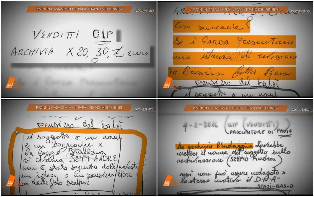 Giuseppe Sempio, padre di Andrea, ha voluto spiegare nel corso della puntata di Quarto Grado il significato di alcuni bigliettini, perquisiti nella loro abitazione dagli inquirenti che stanno indagando su un possibile caso di corruzione nei confronti dell’ex procuratore aggiunto di Pavia Mario Venditti, che nel 2017 archiviò la posizione del figlio...